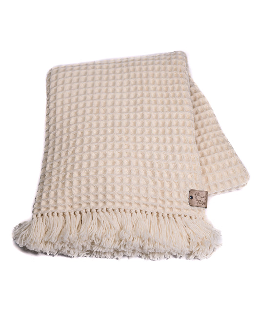 Plush honeycomb design wool blanket with lofty textural square ridges.Regular price $236.00 CADRegular priceUnit price perSale price $236.00 CAD